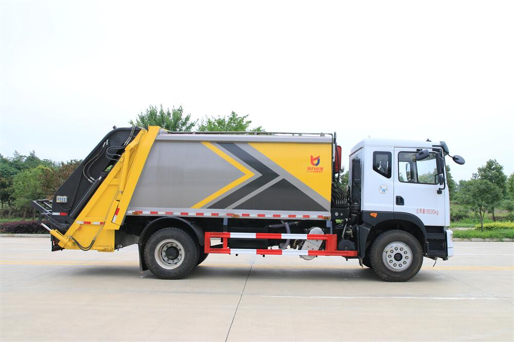 上裝配置:垃圾箱容積:13方,新款平面弧形廂體,廂體材料為武鋼優(yōu)質(zhì)碳鋼,PLC一鍵操作**,手電一體操作模式,兩側(cè)雙電控,帶駕駛室內(nèi)操作,底板支撐加強,雙向壓縮,開放式易清潔污水箱。壓縮式垃圾車采用機(jī)電液一體化技術(shù),借助機(jī)、電、液聯(lián)合自動**系統(tǒng)、電腦**、手動操作系統(tǒng),通過填裝器和推鏟等專用裝置,實現(xiàn)垃圾倒入、壓碎或壓扁、強力裝填,把垃圾擠入車廂并壓實和推卸,污水全部進(jìn)入污水廂,解決了垃圾運輸過程中的二次污染的問題。壓縮式垃圾車具有自動反復(fù)壓縮以及蠕動壓縮功能,壓縮比高、密封性好、裝載量大﹑操作方便、環(huán)保性好﹑整車?yán)霉β矢叩葍?yōu)點。作業(yè)自動化,垃圾收集方式簡便、高效。后翻轉(zhuǎn)機(jī)構(gòu)選裝:1、掛塑料桶式翻轉(zhuǎn)機(jī)構(gòu);2、掛鐵桶式翻轉(zhuǎn)機(jī)構(gòu);3、擺臂式翻轉(zhuǎn)機(jī)構(gòu); 4、簸箕斗式翻轉(zhuǎn)機(jī)構(gòu)。