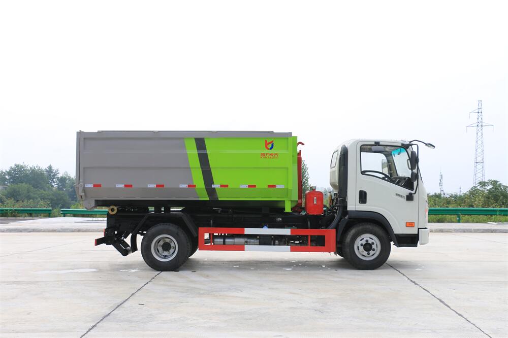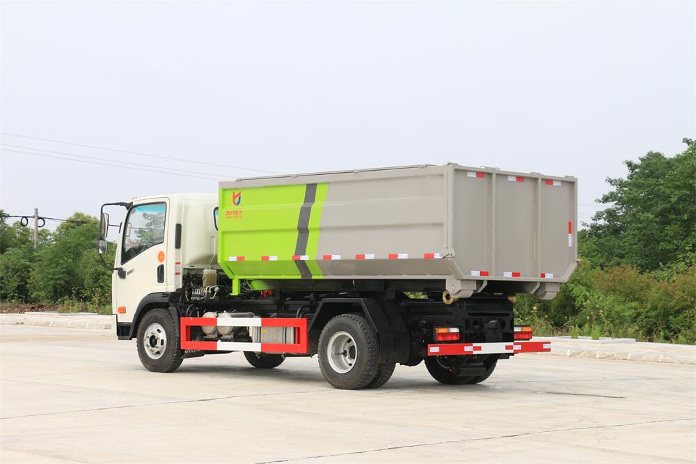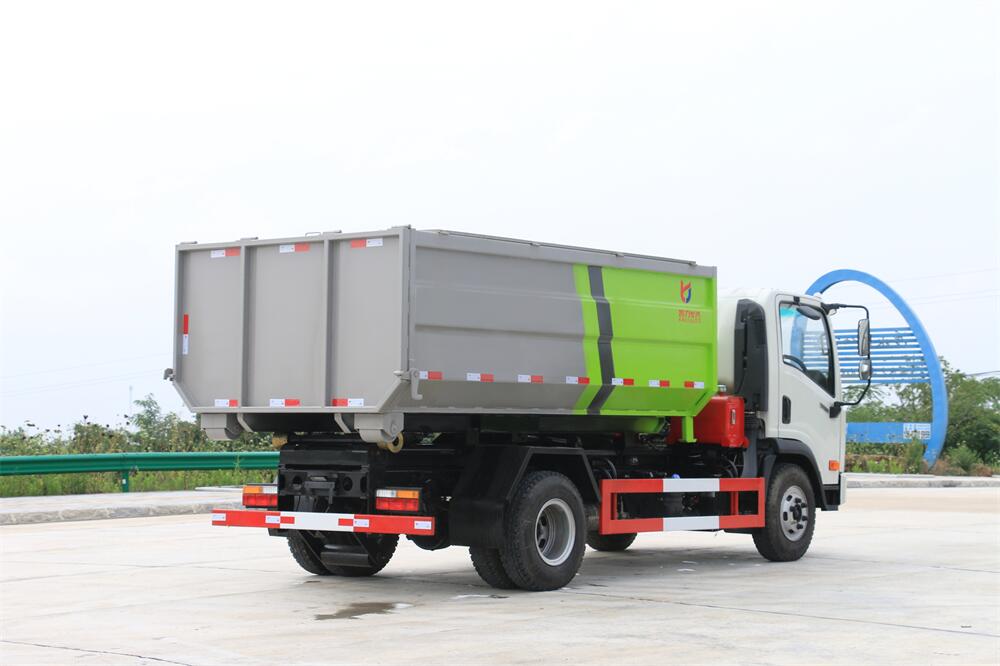 勾臂式垃圾車(車廂可卸式垃圾車)介紹: 車廂可卸式垃圾車又叫拉臂式垃圾車,是一種采用高新設計可伸縮的鉤臂,實現(xiàn)垃圾廂的二次吊裝,自吊上放下,可自行傾倒垃圾的環(huán)衛(wèi)設備。 拉臂式垃圾車結(jié)構(gòu)簡單,操作穩(wěn)定方便,裝卸效率高,機械化程度高,節(jié)省人力。鉤臂垃圾車一車可帶多個垃圾廂,在裝卸的運輸過程中可有效地避免二次污染。 拉臂垃圾車采用高新設計可擺動的鉤臂,垃圾箱由框架、開啟油缸、滑輪、后門和若干加強框架與鋼板焊接而成。調(diào)換貨廂快捷方便,貨廂上帶蓋(倒垃圾時可翻開),鉤臂垃圾車垃圾廂體可選用碳鋼、不銹鋼材質(zhì)、內(nèi)部采取環(huán)氧樹脂防腐處理,改裝部分與原車底盤為可分離式,維修方便且保持了原車的機動性及行駛性能。