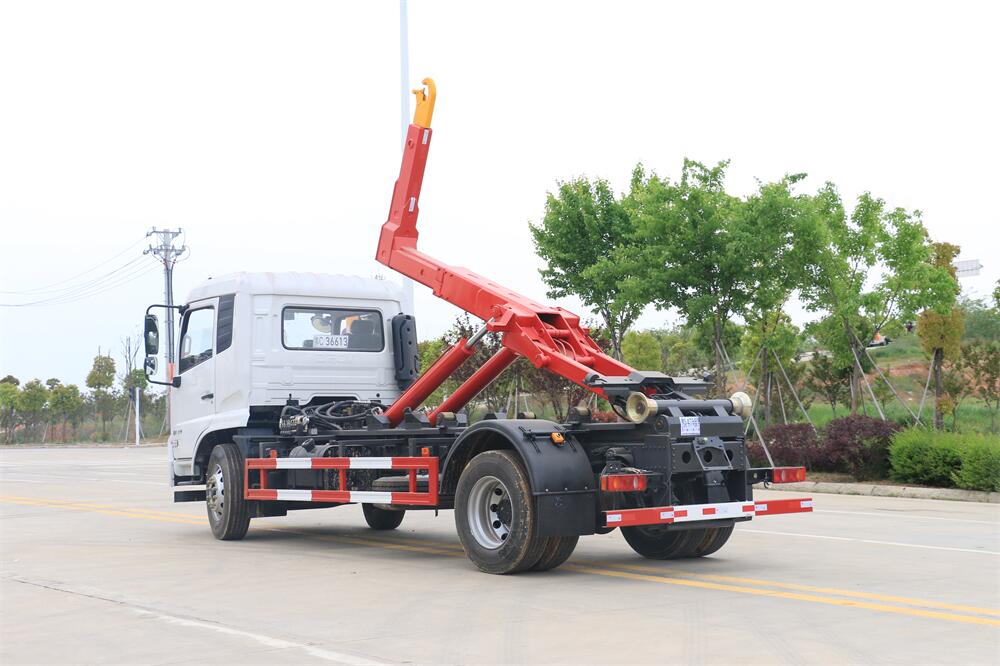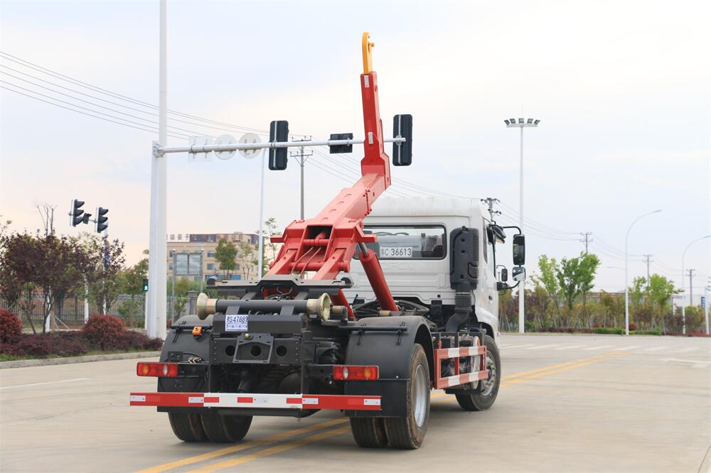勾臂式垃圾車(車廂可卸式垃圾車)介紹: 車廂可卸式垃圾車又叫拉臂式垃圾車,是一種采用高新設(shè)計(jì)可伸縮的鉤臂,實(shí)現(xiàn)垃圾廂的二次吊裝,自吊上放下,可自行傾倒垃圾的環(huán)衛(wèi)設(shè)備。 拉臂式垃圾車結(jié)構(gòu)簡(jiǎn)單,操作穩(wěn)定方便,裝卸效率高,機(jī)械化程度高,節(jié)省人力。鉤臂垃圾車一車可帶多個(gè)垃圾廂,在裝卸的運(yùn)輸過程中可有效地避免二次污染。 拉臂垃圾車采用高新設(shè)計(jì)可擺動(dòng)的鉤臂,垃圾箱由框架、開啟油缸、滑輪、后門和若干加強(qiáng)框架與鋼板焊接而成。調(diào)換貨廂快捷方便,貨廂上帶蓋(倒垃圾時(shí)可翻開),鉤臂垃圾車?yán)鴰w可選用碳鋼、不銹鋼材質(zhì)、內(nèi)部采取環(huán)氧樹脂防腐處理,改裝部分與原車底盤為可分離式,維修方便且保持了原車的機(jī)動(dòng)性及行駛性能。
