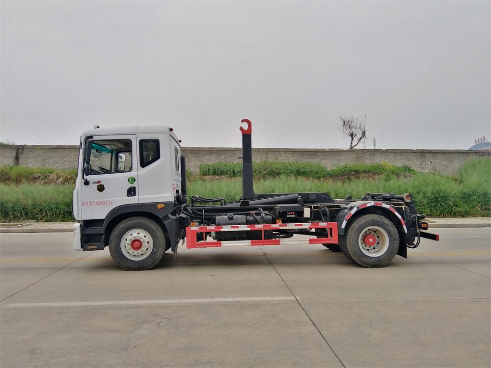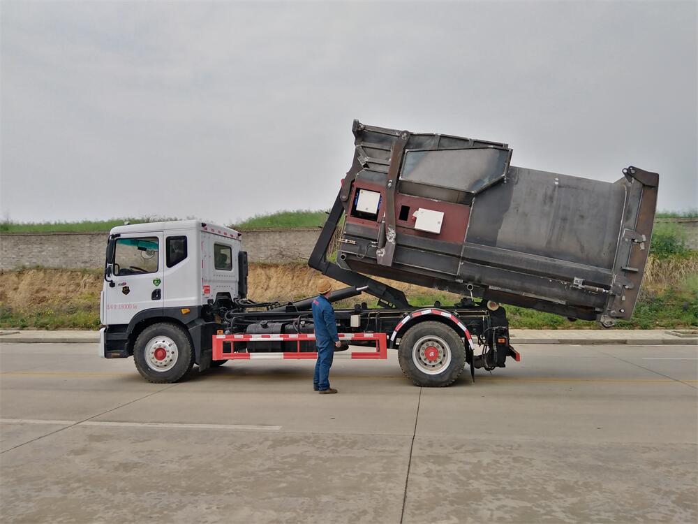 勾臂式垃圾車(車廂可卸式垃圾車)介紹: 車廂可卸式垃圾車又叫拉臂式垃圾車,是一種采用高新設(shè)計可伸縮的鉤臂,實現(xiàn)垃圾廂的二次吊裝,自吊上放下,可自行傾倒垃圾的環(huán)衛(wèi)設(shè)備。 拉臂式垃圾車結(jié)構(gòu)簡單,操作穩(wěn)定方便,裝卸效率高,機械化程度高,節(jié)省人力。鉤臂垃圾車一車可帶多個垃圾廂,在裝卸的運輸過程中可有效地避免二次污染。 拉臂垃圾車采用高新設(shè)計可擺動的鉤臂,垃圾箱由框架、開啟油缸、滑輪、后門和若干加強框架與鋼板焊接而成。調(diào)換貨廂快捷方便,貨廂上帶蓋(倒垃圾時可翻開),鉤臂垃圾車?yán)鴰w可選用碳鋼、不銹鋼材質(zhì)、內(nèi)部采取環(huán)氧樹脂防腐處理,改裝部分與原車底盤為可分離式,維修方便且保持了原車的機動性及行駛性能。