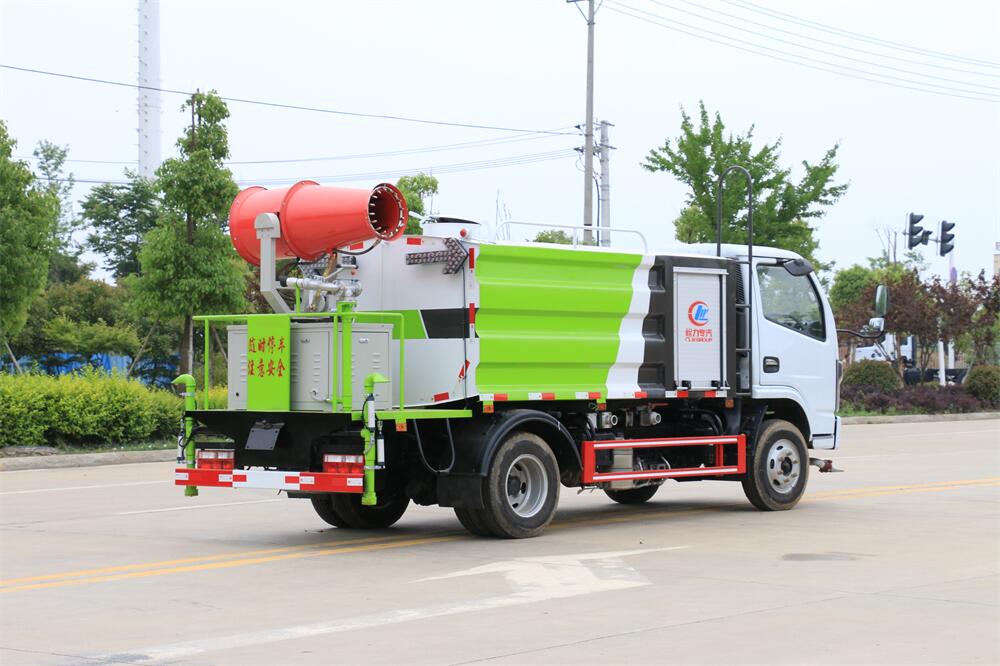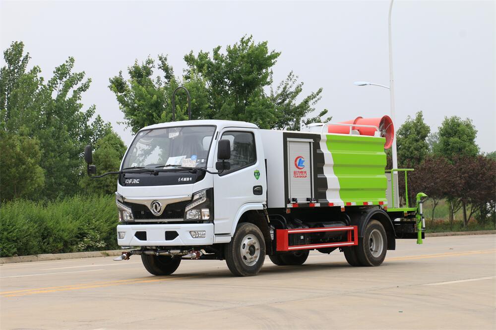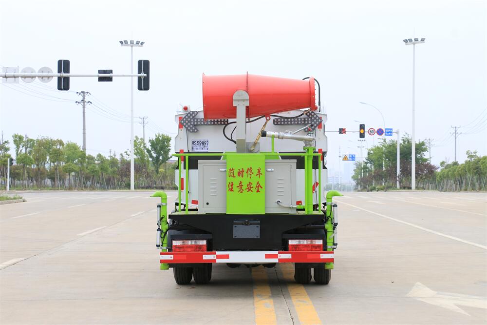 上裝配置:罐體容積為 5-7立方,選配風(fēng)送式霧炮機(jī)組射程30米、40米、50米、60米、80米、100米、120米霧炮,罐體鋼板為4mm碳鋼Q235材質(zhì),罐內(nèi)隔板具有防波作用,以減輕汽車行駛時(shí)罐體液體沖擊,罐體及整車外形尺寸按照公告。帶大功率專用灑水泵,泵可自吸自排,整車前沖、后灑、側(cè)噴、帶65消防接口,后平臺(tái)配CLW-50、CLW-60、CLW-80、CLW-100、CLW-120型風(fēng)送式霧炮機(jī)組;罐體前封頭配大功率柴油發(fā)電機(jī)組;前封頭帶水位計(jì),后平臺(tái)主管路帶1寸澆花接口,后爬梯。帶兩根輸水管及陰陽(yáng)端。罐體顏色:銀/灰/綠,罐體兩側(cè)噴“多功能抑塵車”字樣,貼反光標(biāo)示。