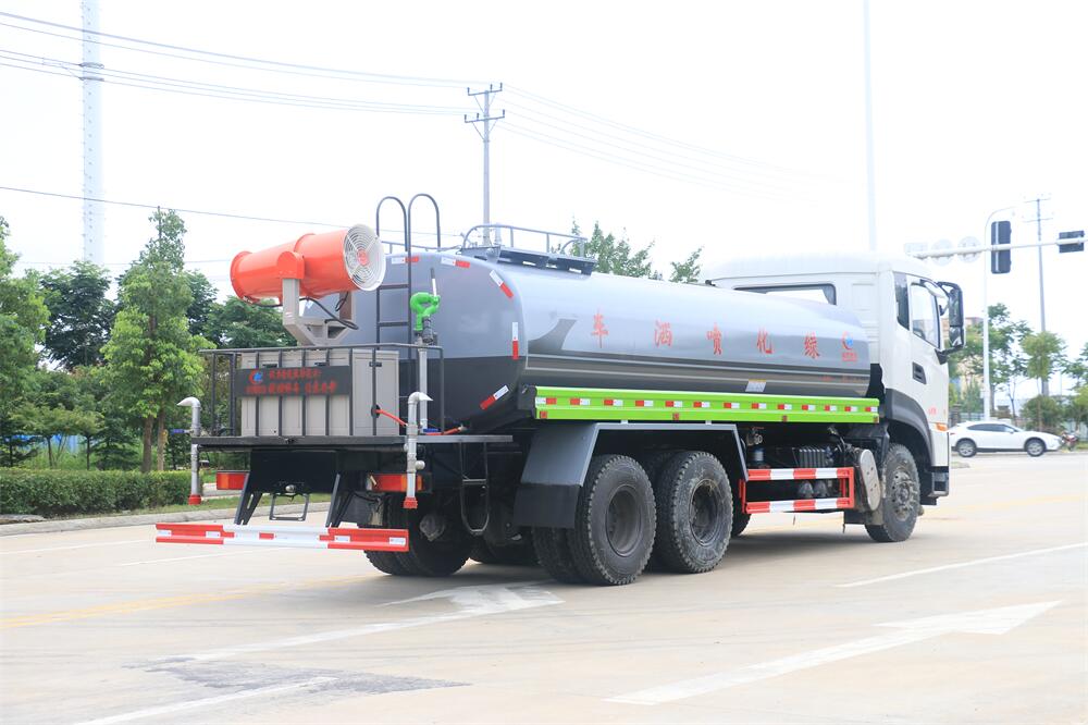 上裝配置:罐體容積 18-20立方,風(fēng)送式霧炮機(jī)組30米,40米選擇,罐體采用國標(biāo)Q235碳鋼材質(zhì),罐體厚度4MM,前后封頭5MM加厚型,罐體內(nèi)雙層隔板具有防波蕩作用,以減輕汽車行駛時罐內(nèi)液體沖擊;灑水車整車及外形尺寸嚴(yán)格按照**機(jī)動車公告制作而成;裝配大功率專用灑水泵,前沖、后灑、側(cè)噴、后平臺帶綠化灑水炮,灑水炮可全方位旋轉(zhuǎn),可連續(xù)調(diào)成直沖狀、大雨、小雨、毛毛雨;配消防接口,自流閥,濾網(wǎng),帶自吸自排功能。前封頭帶水位計,后平臺主管路帶1寸澆花接口,后爬梯,帶1個消防接頭,帶1個自流閥,1個過濾裝置,其余標(biāo)配。
