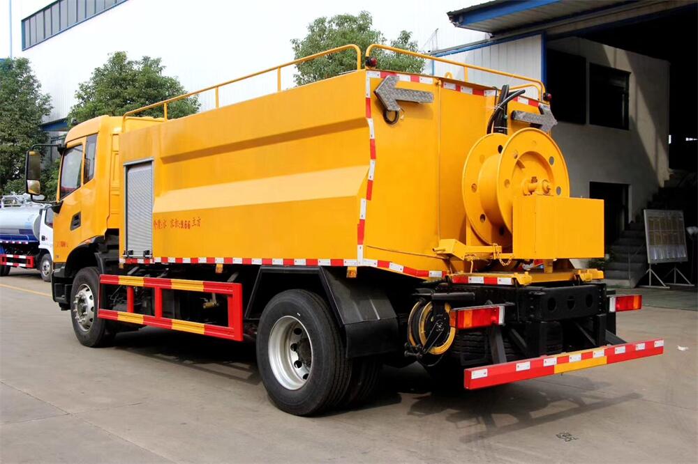 上裝配置:清水罐約 4立方,污水罐約 8 立 方;罐體 8mm 厚,封頭 8mm 厚,水罐、污罐可 互通,用 100 球閥**開關(guān);清洗部份采用天 津通潔高壓泵,壓力 19Mpa,流量 215L/min, 配 80 米直徑 22 高壓管帶液壓卷盤;吸污部份 采用濰柴375馬力副發(fā)動(dòng)機(jī)帶山東SK-30水循 環(huán)泵(副發(fā)自帶),吸污罐帶舉升,后封頭焊 死(可選擇后封頭全開),尾部加裝一個(gè) 600mm 快開,罐體后尾部一個(gè) DN150 排污口球閥,一 個(gè) DN100 吸污球閥帶出口盤,一個(gè)視污窗,一 根 10m 吸污管,一套陰陽(yáng)端,壓力表,防溢 閥,箭頭燈,工具箱,淋管裝置,高壓泵帶氣 吹水。配一個(gè) 4.5 公斤水雷噴頭,另帶一個(gè) 80 公分手持洗車噴頭。