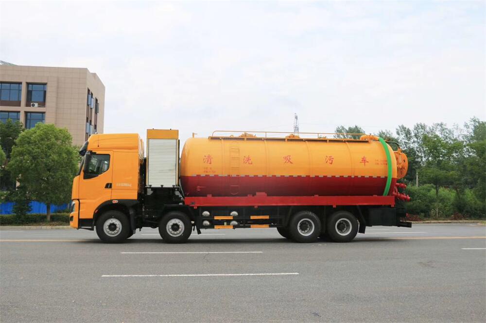 高壓清洗吸污車集沖洗、疏通、吸污、反排功能于一體,它使用于各種液狀、半液態(tài),以及各種溝渠下面的污泥、糞便、廢水等介質(zhì)的抽吸、裝運(yùn)、排卸之用,還可用于突發(fā)環(huán)境污染事故的應(yīng)急處理。這將大大提高清洗吸污車工作效率,增強(qiáng)作業(yè)能力。