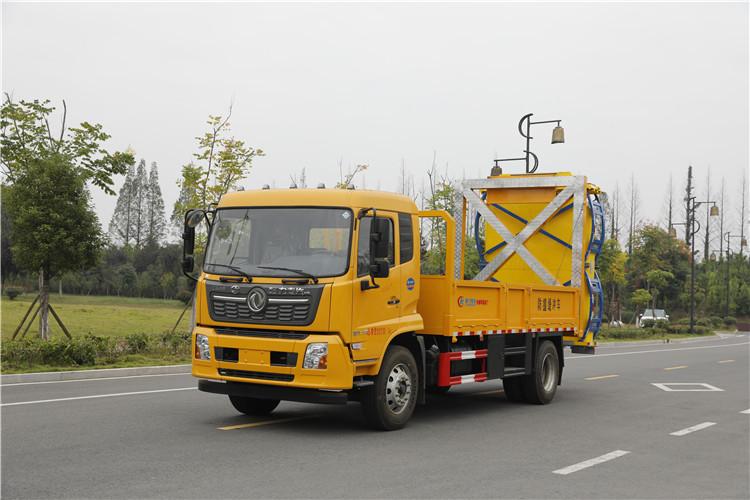 上裝配置:護(hù)箱:采用Q235國(guó)標(biāo)邊2mm底板花紋板3mm厚,箱體后部防撞包采用美國(guó)進(jìn)口T90型號(hào),防撞緩沖吸能模塊主要由車載防撞緩沖墊和導(dǎo)向標(biāo)志架組成,充當(dāng)施工作業(yè)車輛后方的緩沖衛(wèi)士。如若發(fā)生追尾事故,能夠在肇事車輛和前方施工作業(yè)區(qū)域之間構(gòu)建一個(gè)緩沖區(qū)域,通過(guò)機(jī)具結(jié)構(gòu)變形吸收撞擊的能量,**大限度地降低被保護(hù)人員及設(shè)備遭到碰撞的幾率。高性能液壓系統(tǒng),可實(shí)現(xiàn)快速舉升和落下操作,方便設(shè)備運(yùn)輸轉(zhuǎn)場(chǎng),一鍵啟動(dòng)功能,舉升和落下防撞裝置,當(dāng)防撞裝置未完全落下到工作位置或舉升到垂直運(yùn)輸位置時(shí),會(huì)有自動(dòng)**告音提示。